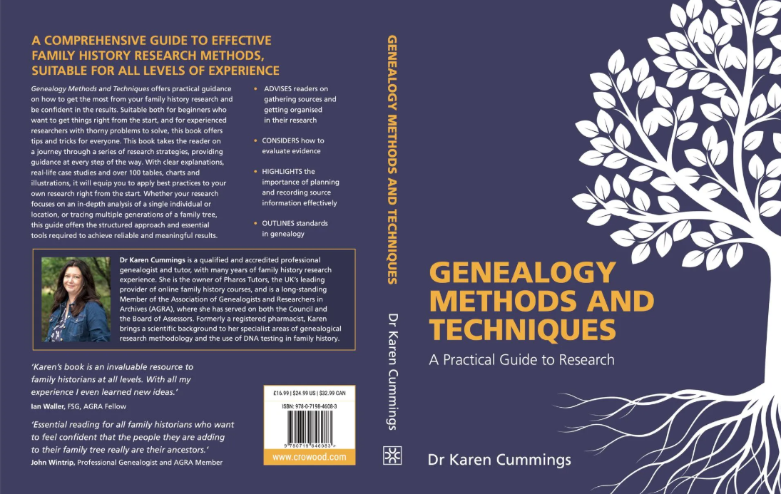 Genealogy Methods and Techniques: A Practical Guide to Research, by Dr. Karen Cummings (The Crowood Press, 2026; £16.99) ISBN: 9780719846083 https://www.crowood.com/book/genealogy-methods-and-techniques/